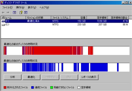 ファイル類やフリーソフトなど、システムとはあんまり関係ないファイルを放り込んでいるドライブですが、これはいくら何でも無いわとついでに最適化。