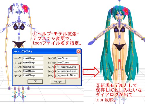 それに伴ってexeもモデル読み込み時にtoonxx.bmpを使用する設定にかわっていた様です。
